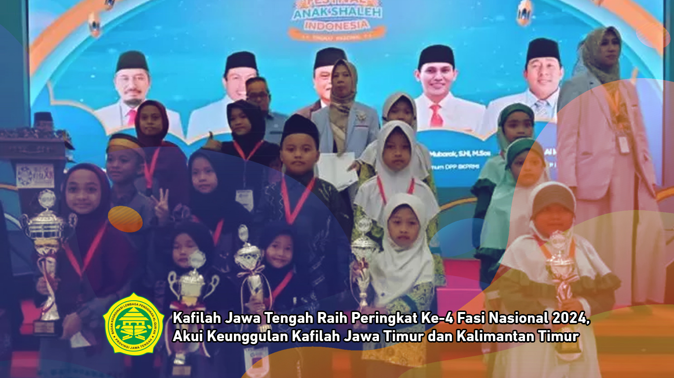 SEMARANG, suaramerdeka.com – Kontingen kafilah Jawa Tengah berhasil meraih peringkat ke-4 dalam ajang Festival Anak Sholeh Indonesia (Fasi) Nasional XII Tahun 2024, di Bekasi Jawa Barat, 24-27 Oktober.